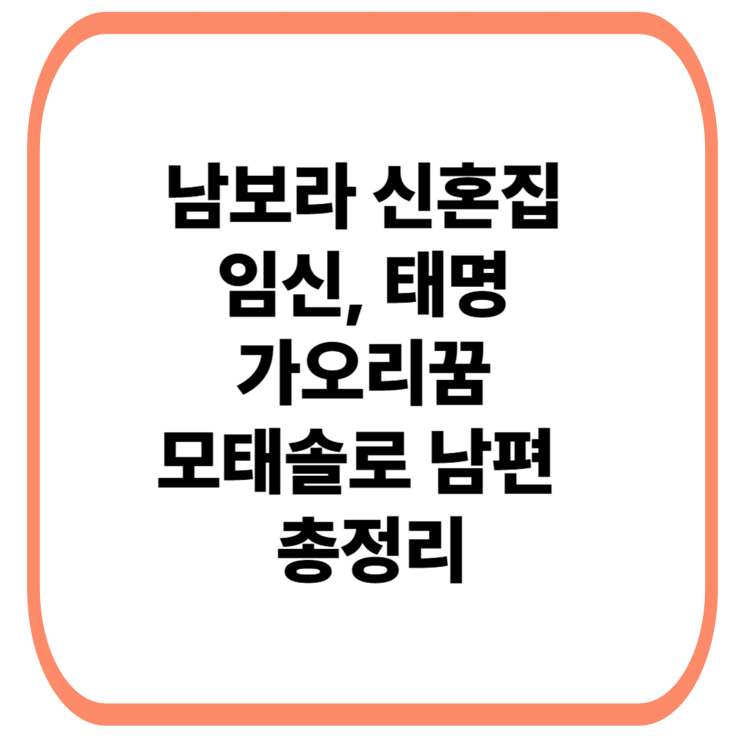 이 글에서는 남보라의 신혼집 정보, 임신 주차, 태몽, 남편 반응, 직업 정보 등을 한눈에 정리해드립니다.