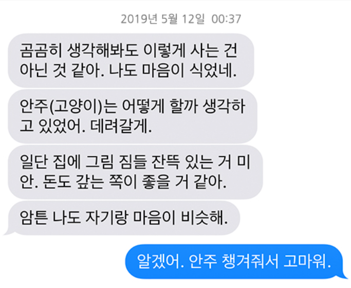 - 반려견 안주와 함께 지냄 (3마리: 요크셔테리어, 스코티시폴드 등)