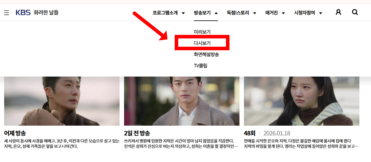 🎥 4. KBS 공식 다시보기 (VOD)